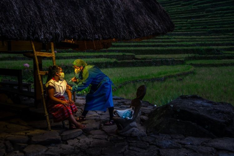 In the remote Banaue mountains, a health worker delivers care where access is near impossible—capturing the quiet power of healthcare that moves, when patients cannot.
